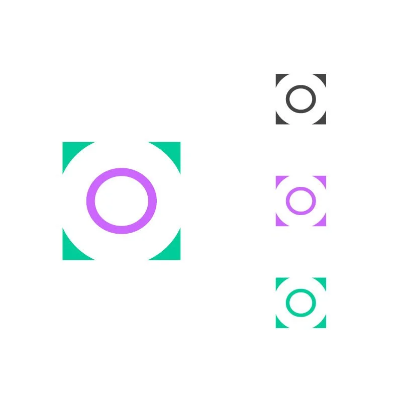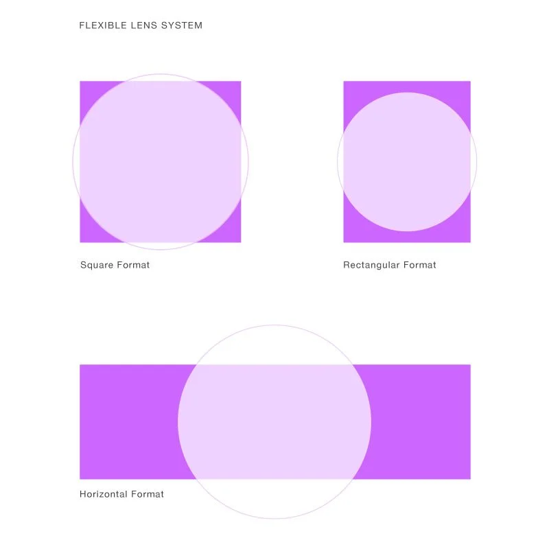 The logo scales according to the content, maintaining the circle of the lens for any format.